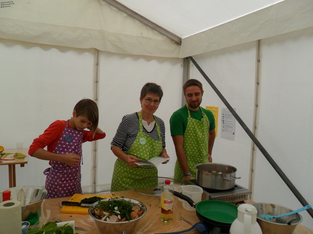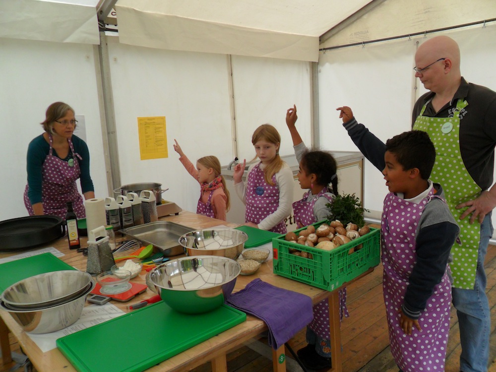 Ab 11.00 Uhr werden zu jeder vollen Stunde Gruppen von jungen Amateurköchen gebildet, die dann für eine Stunde aktiv werden können. Ab 12.00 Uhr stehen dann die ersten fertigen Gerichte nicht nur für die Köche zum Verzehr bereit.